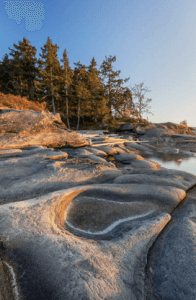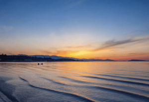 The ocean around Nanaimo glows at dawn — a silvery calm before the day begins. Kayaking together is a beautiful way to experience that stillness. Paddle along the coast toward Newcastle Island Marine Park or across to Saysutshun, where you can land, wander forested trails, and enjoy a picnic among ancient arbutus trees.